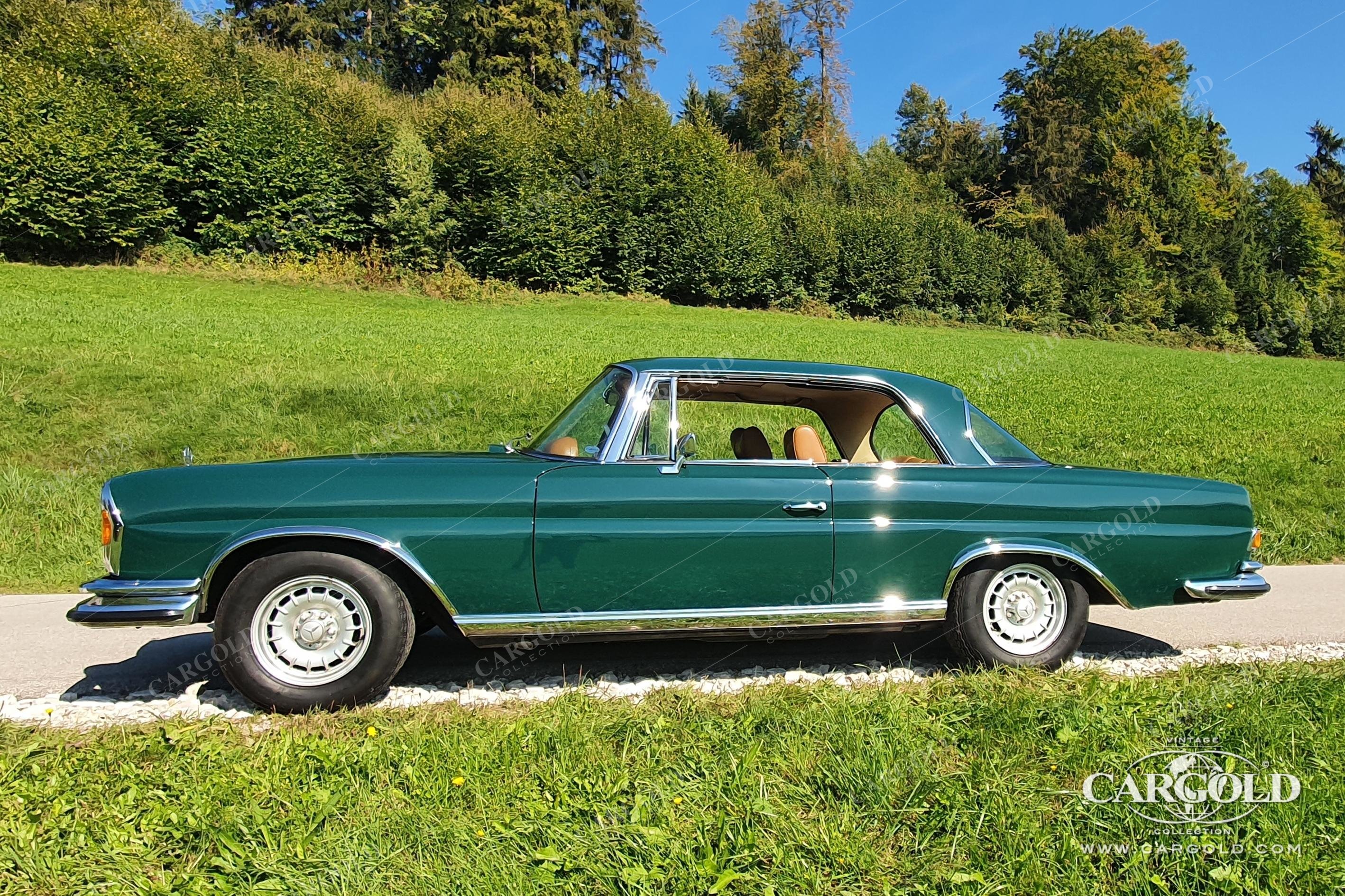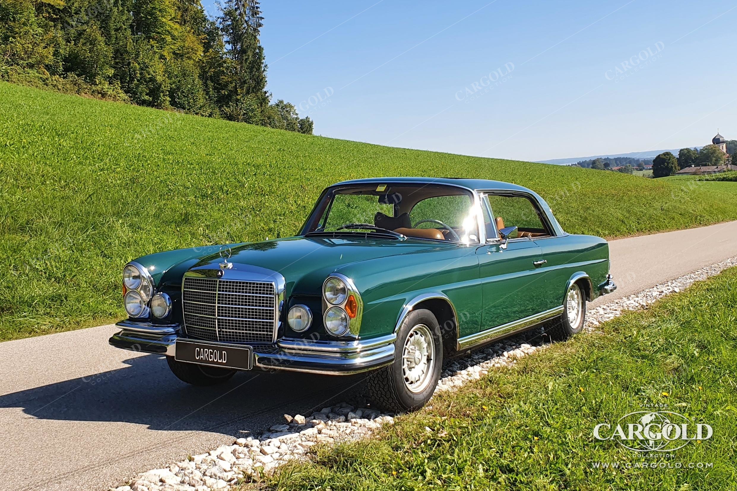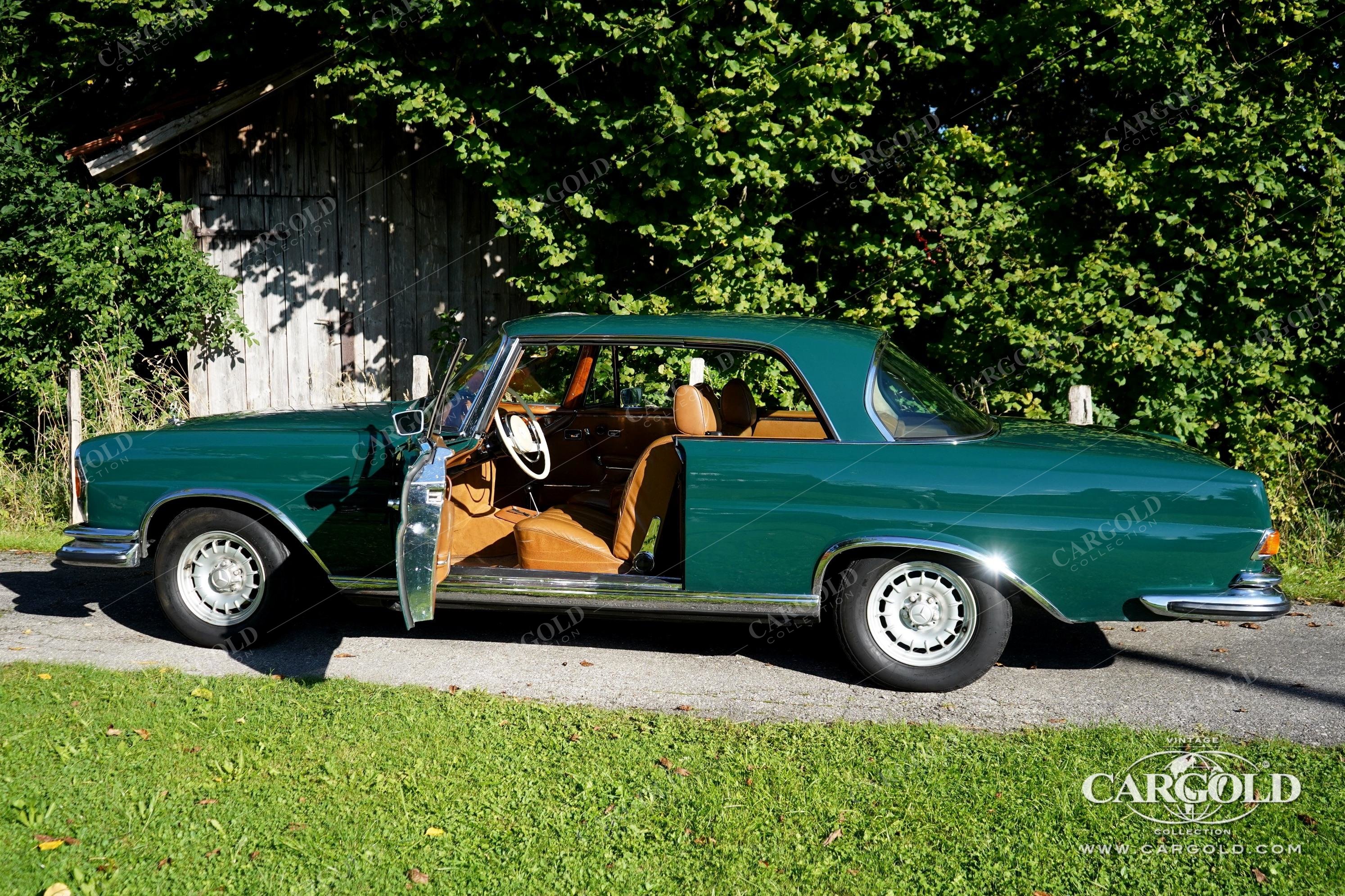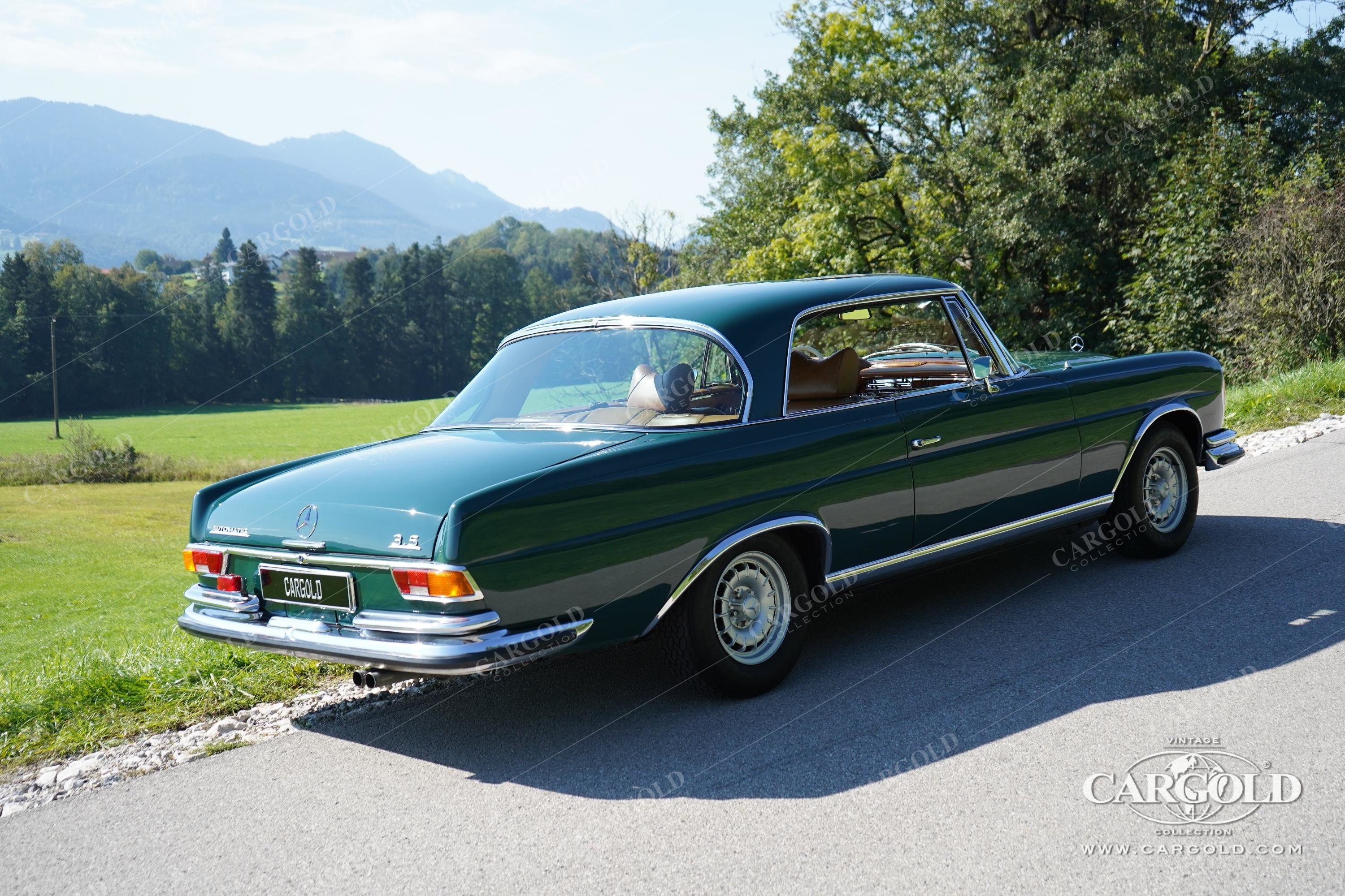 Dieses dunkelgrüne Mercedes 280 SE 3.5 Coupe wurde 1970 neu in Duisburg ausgeliefert.
